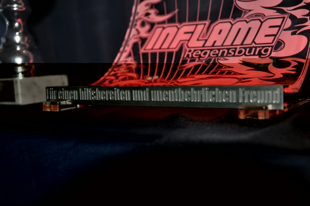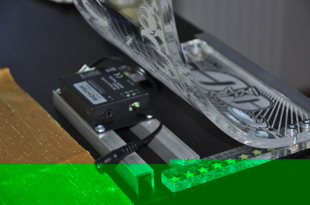 Das Design ist gelasert worden und schaut mit Ledbeleuchtung so aus.