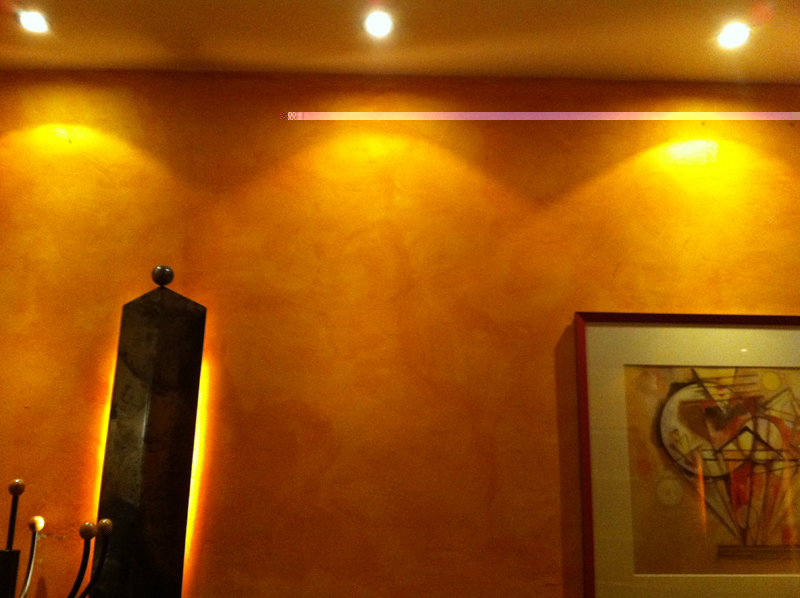 Wenn deine Wände schon einen warmen Farbton haben, könntest du sogar Lampen bis 4200K einsetzen, da ja das reflektierte Licht die Farbe der Wand annimnt.