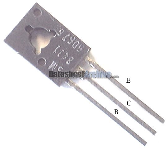 Der Transistor sieht so aus, auf korrekte Beschaltung achten (Buchstaben stimmen mit denen der Schaltung überein (das Ding mit dem Pfeil und der Platte in der Zeichnung))