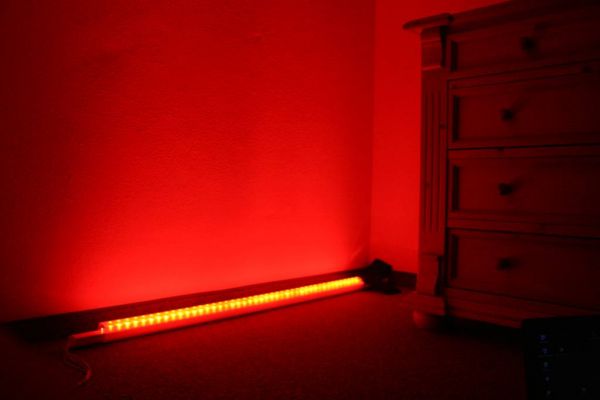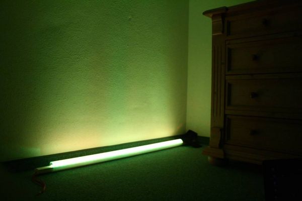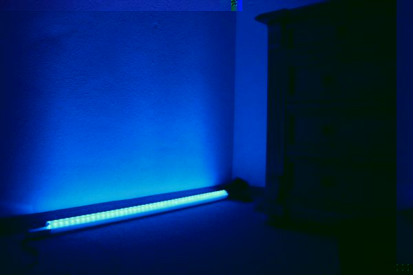 Wow! Also, da die Leds so ganz knapp aneinander gereiht sind, wird die beleuchtete Fläche (hier die Wand) komplett ohne Übergänge "gefärbt"!!