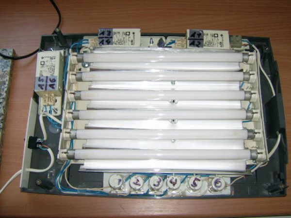 ca 2 Euro vom Flohmarkt einen Gesichtsbräuner 5 Euro auch vom Fl.-Markt. Beide ausschlachten und den Bräuner in den Scanner eingebaut. Fertig ist der Platinenbelichter. Ich selbst habe schon 8 Stück nach diesem Prinzip gebaut und weiterverkauft.(für 50 Euro) Belichtungszeit liegt bei etwa 90 sek.