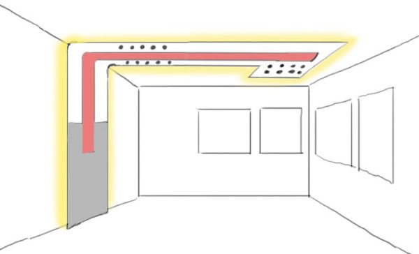 Und das gelbe soll warmweiße indirekte beleuchtung sein, die die Decke beleuchtet,