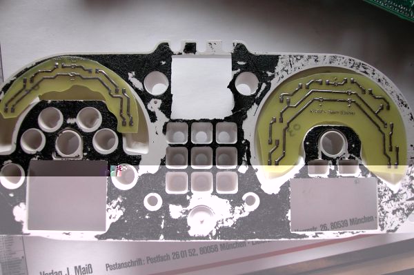 Also gehen wir nun davon aus, dass der Tacho ausgebaut ist, der Tacho zerlegt und die Tachofolie herunten ist. Somit ist nun schnell klar warum das ganze so hässlich grün leuchtet. Das ist die Tachofolie von hinten. Wie man sehen kann, ist sie im Bereich der Zahlen mit einem durchscheinenden Lack überzogen. Dazu aber später mehr... Hier kann man sehen, wie es vor der Behandlung ausgesehen hat und so nachher: der Drehzahlmesser schon komplett vom grün befreit Diese weiße Schicht wurde mit einem recht scharfen Messer und feinem Schleifpapier langsam abgetragen