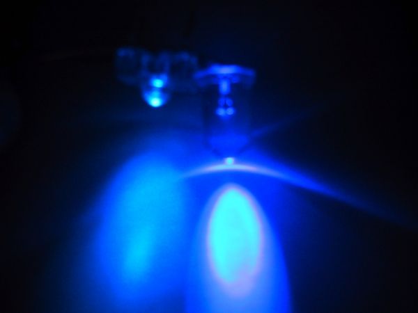 links die SuperFlux rechts die Ultrahelle LED blau 8000mcd: