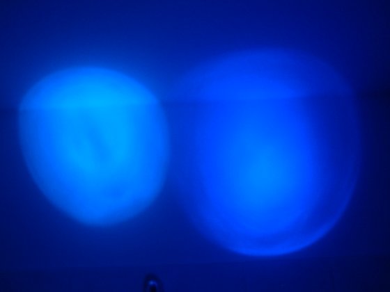 Die eine hat eher ein tieferes Blau wie es für 460nm eigentlich auch sein sollte,dafür aber einen deutlich kleineren Abstrahlwinkel als die andere! Die zweite Led hat dagegen eine deutlich hellere Farbe als 460nm.