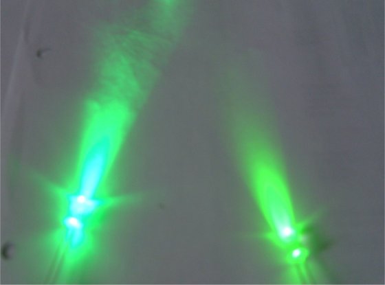 Obwohl die Led mit 540nm noch näher am Empfindlichkeitsmaximum des Auges liegt als andere Grüne Led gibt sie sehr wenig Licht ab,das sieht man auch mehr als deutlich auf den Bildern.