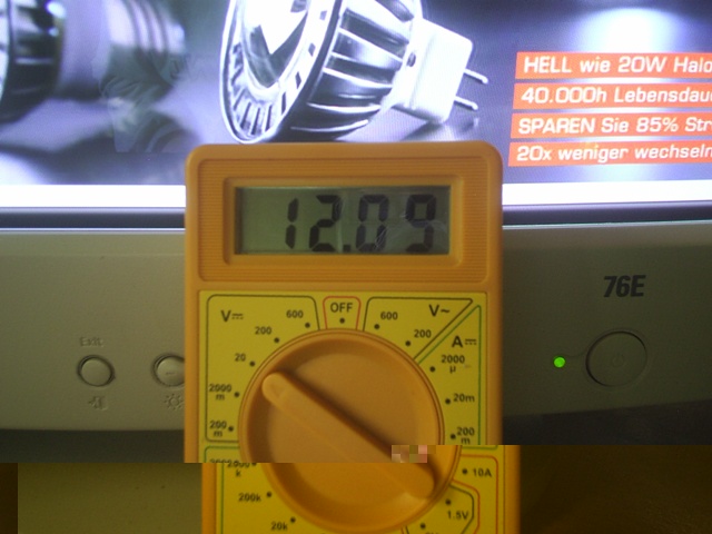 Mein Test habe ich mit einen Einfachen / Stabilisierten 12V Netzteil durchgeführt. Dabei betrug beim Test die Spannung des Netzteils 12,09V. Weiterhin ist zu Bemerken das ich die Empfohlenen Widerstände für die Led's verwendet die im Shop so für 12V verwiesen Waren.
