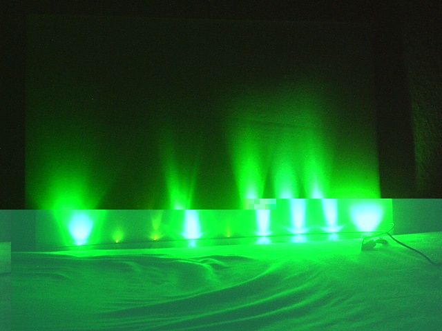 Im ersten Test habe ich einmal alle Led's an die Wand strahlen lassen, im Abstand von 15cm zur Wand.