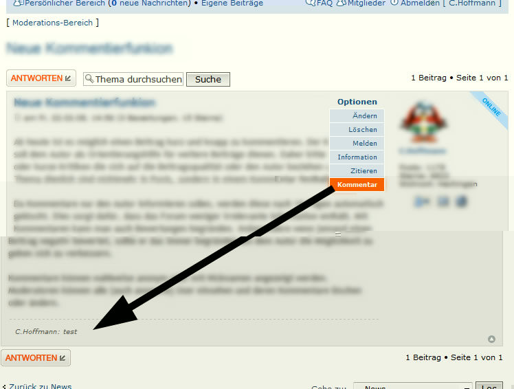 Neue Kommentierfunkion