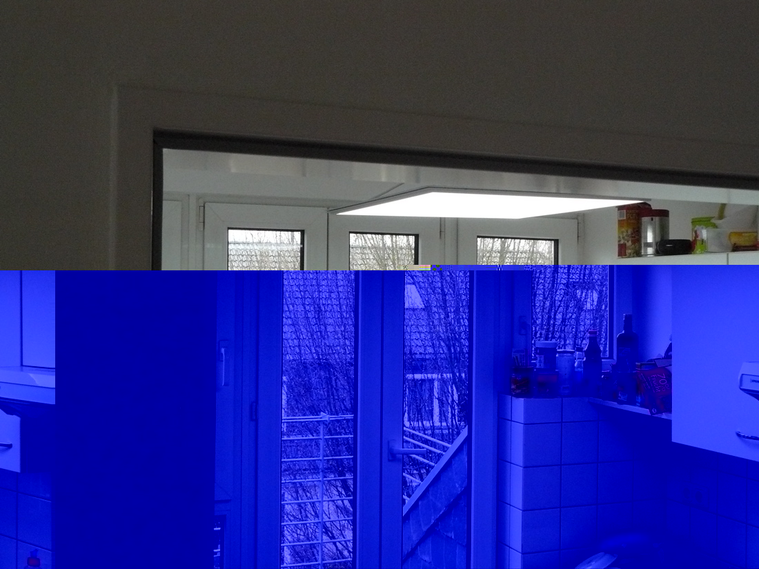 Auf dem Foto sieht man, bei Weißabgleich bewölkt, also kühles Tageslicht, dass die Deckenlampe immernoch nen Blaustich hat.