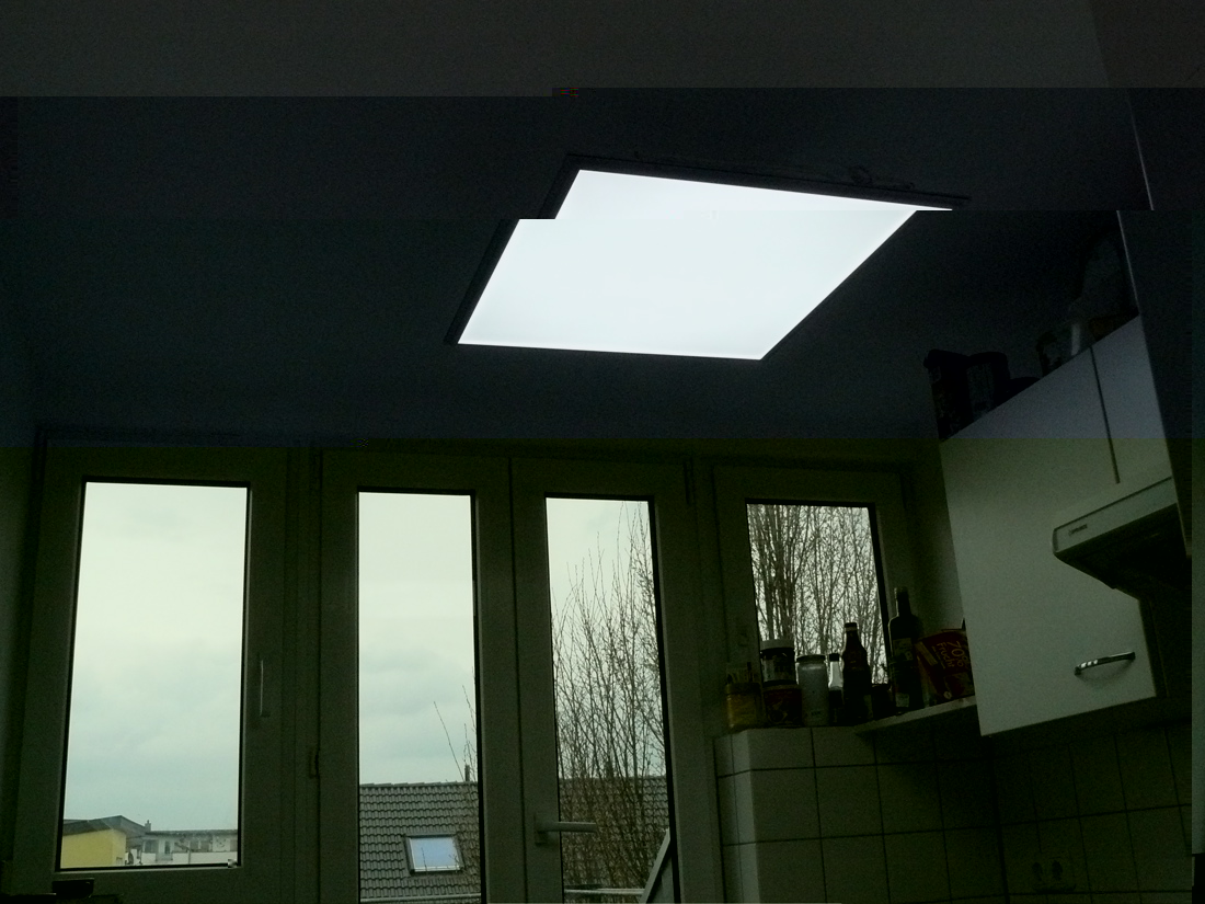 In der Leuchtstärke verliert die Edison gegen das 1,20m breite Panel natürlich auch, aber wie gesagt da hinkt der Vergleich ein wenig. Obwohl beide die gleiche Leistung haben: 74W die Deckenleuchte, 72W das Panel.