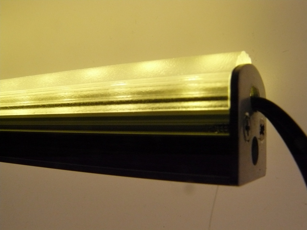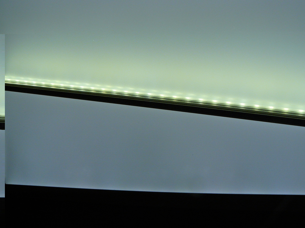 Bei der Lumitronix Platine im Aluprofil verhindert die Profilkante natürlich ein homogenes auslaufen des Lichtes, was sich beim Einsatz einer Abdeckung auch optimieren lässt. Ich werde die Platine eh als Randlicht für ein Panel einsetzen.
