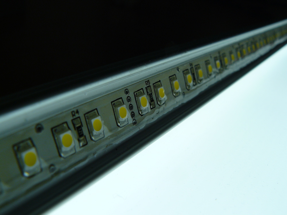 Schlappe 16€ für 60 SMD LEDs auf einer, zum Anschliessen fertig,Alu-Leiste 50cm lang.