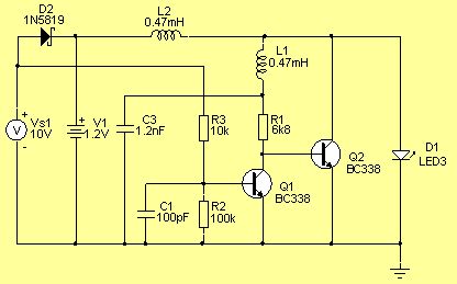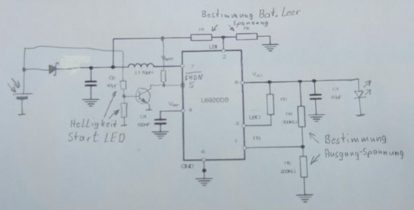 Hier der Schaltplan dazu: Nachtrag: Diese Schaltung funktioniert, aber die Helligkeit der LED ist nur Durchschnitt !!!