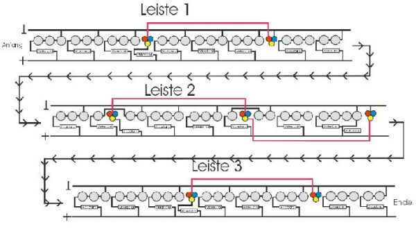 Ja die dreier Päckchen verbindest du auch mit den 0.14mm² Kabel. Ja diese widerstände sollst du nehmen wie ich oben schon geschrieben habe: