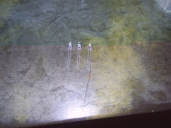 So ich habe als erstes die Leds so hingelegt wie ich sie auch verlöten werde ganz links - dann +an- +an- und dann kommt + mit den 220 Ohm Widerstand! Immer kurzer Pin an langen Pin! So sieht das ganze dann verlötet aus, leider bei mir weil es schnell gehen musste schauen die Lötpunkte nicht so gut aus^^. So dann nur noch ganz rechts wo auch an + der 220 Ohm Widerstand ist den + Pol von dem Steckernetzteil dran und ganz links halt den Minuspol dran stecken, und dann sollte das ganze leuchten! Mh hast du dir auch wirklich 220 OHM Widerstände gekauft? Nicht das du 220 kOhm gekauft hast...