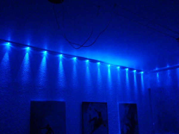 So ich habe soeben den ersten Prototyp fertig gestellt. 2 x 3 Leds Paralell und mal unter die Decke gehangen also mir gefällt das ganze ne richtige beleuchtung zum chillen. Ich denke mal ich werde am Samstag oder spätestens Sonntag den ganzen Tag dran arbeiten damit das ganze fertig wird! Ich will dann noch diese Funk Steckdosen kaufen damit ich das ganze mit ner Fernbedienung steuern kann, hat jemand damit Erfahrungen ??