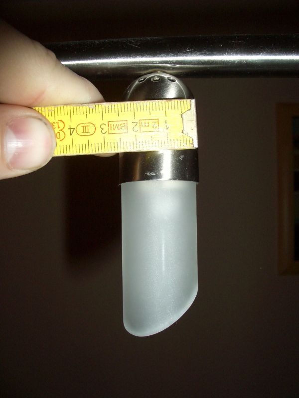 OK, war bei Halogen auch nicht anders zu erwarten.. Alles andere würde höchstwahrscheinlich wegschmelzen... Für die Halterungen müsstest du dir dann auch noch was überlegen - vielleicht zwei relativ große Kugeln mit einer dazwischen gespannten Druckfeder einarbeiten. Die Feder müsste so stark sein, dass das Glas sicher hält, aber auch nicht so stark, dass du Gewalt anwenden musst.