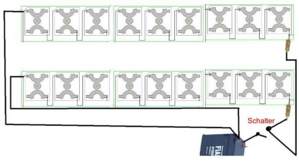 davon insgesamt 2 leisten a 9 led, die an einen schalter angeschlossen werden sollen.