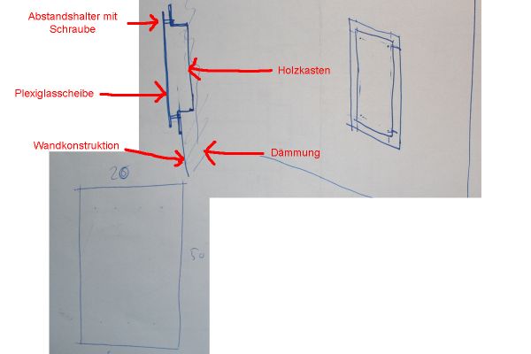 Dann noch alles in die Wand bauen, die Kiste mit Leben füllen und das Plexiglas drüber.