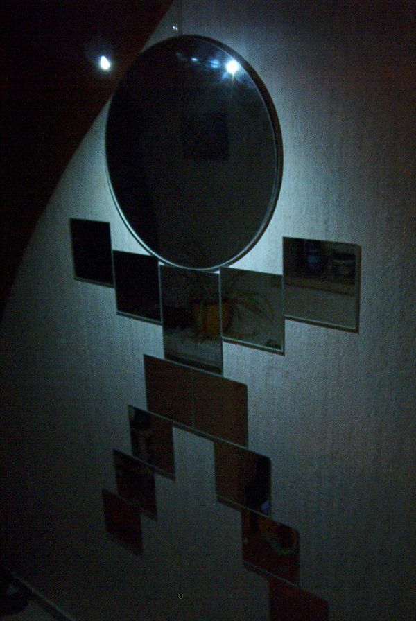 Zuerst die Spiegel in Form eines Männchens an die Wand kleben (mit doppelseitigen Klebeband oder Tesastips)