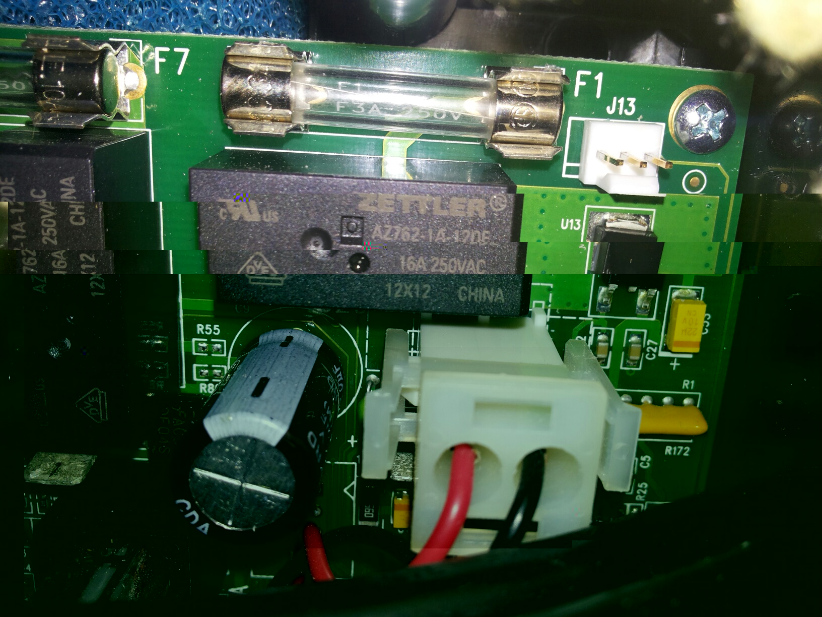 Die Platine muss um einiges größer sein. Ich sehe nur einen Teilbereich mit 3 Sicherungen, obwohl es mindestens 7 Stück (F1 ... F7) sein müssten.vielleicht kann man mit den Bildern was anfangen.