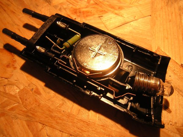 Bei Modifikationen in dieser Lampe ist Vorsicht geboten, da hier 230V beim Laden anliegen!!