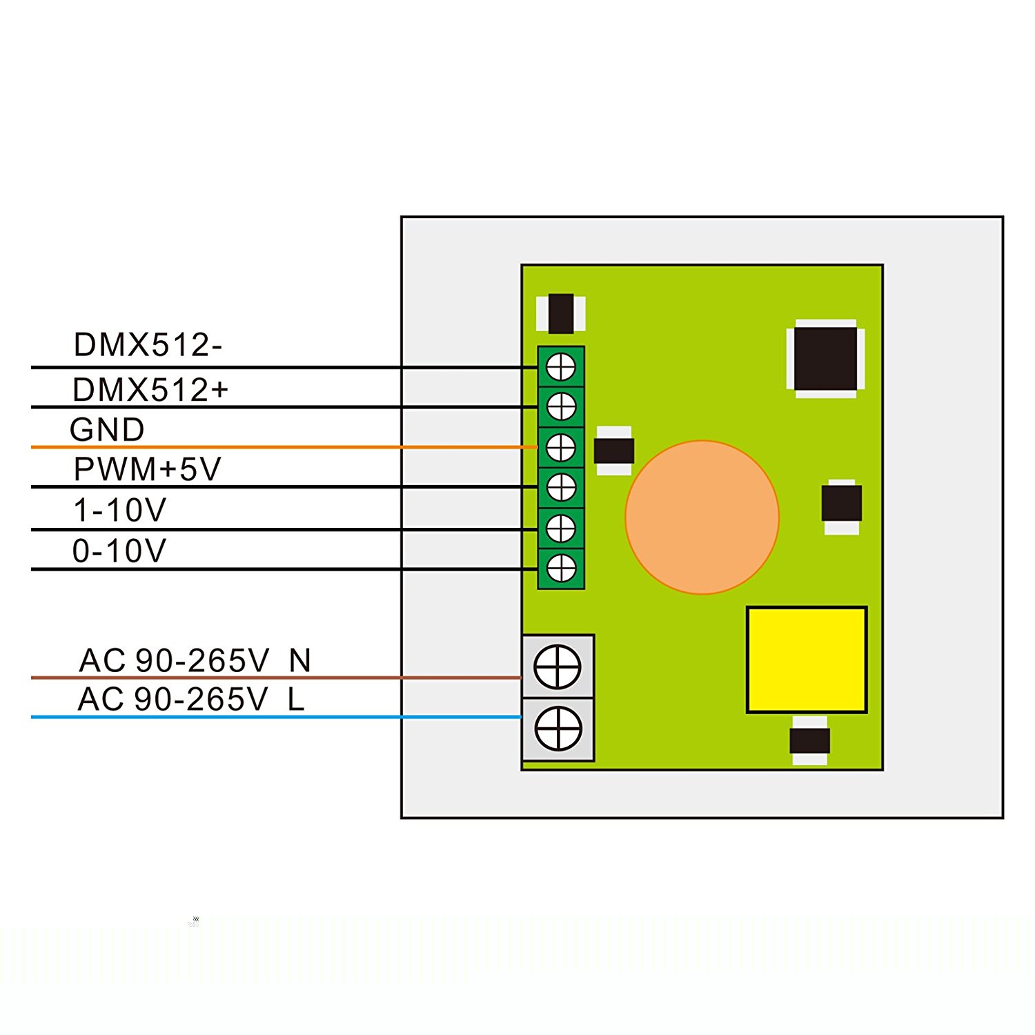 AC 90-265V N ist nicht das braune Kabel. Neutral (N) ist immer blau.