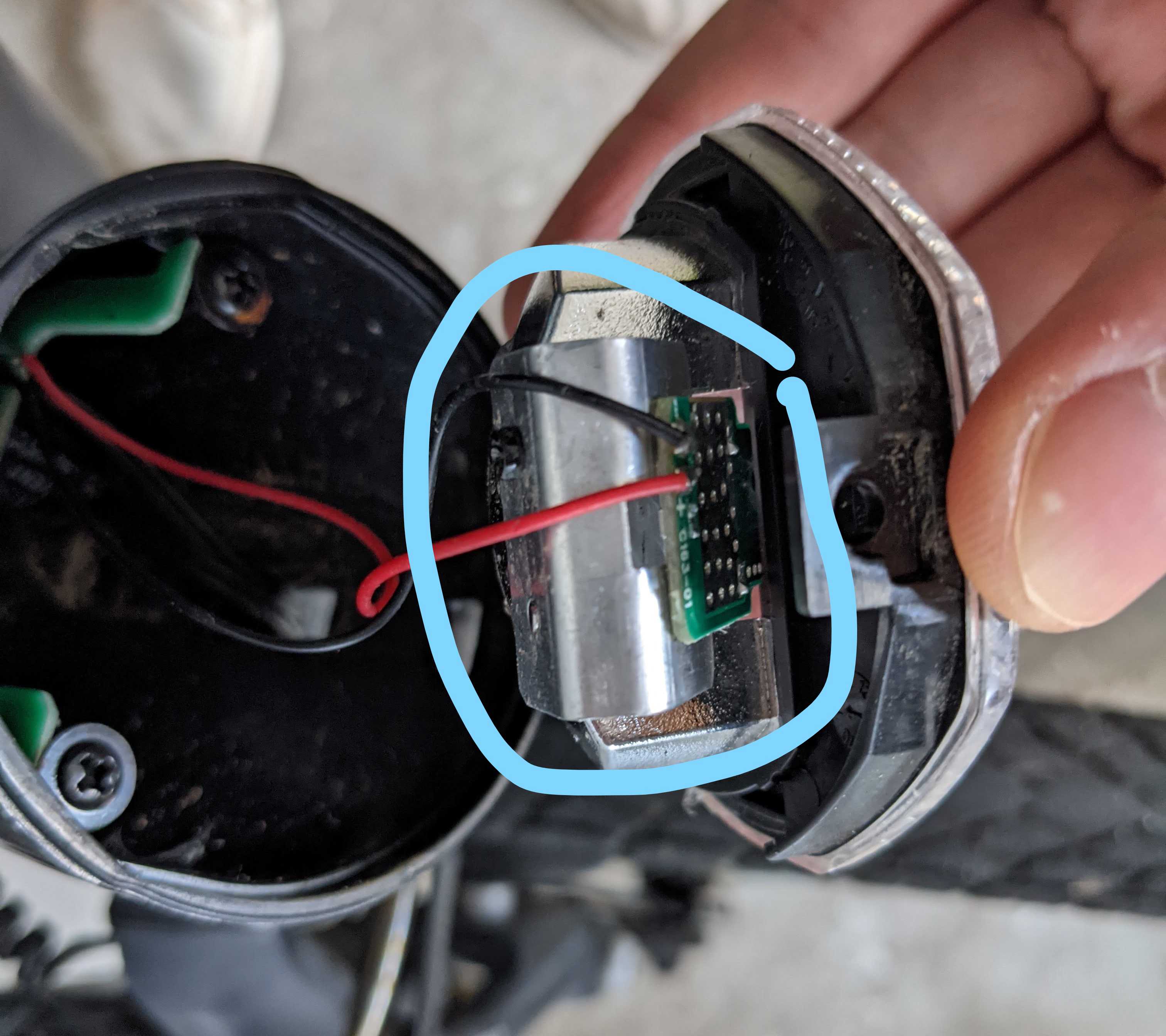 Meine Fahrrad Scheinwerfer - LED (Bild2+3) ist ausgebrannt und es ist mir leider nicht möglich das Ersatzteil zu finden. Deswegen wollte ich hier fragen, ob jemand weiß, woran es sich dabei handelt und wo man passende Ersatzteile findet kann. Oder zumindest, falls dies auch niemand identifizieren kann, ob jemand ein LED empfehlen kann, welche ich stattdessen einbauen/dranlöten kann. (Die gemessenen Strom/Spannung am roten/schwarzen Kabel (Bild1) waren maximal I=0.4A und V=10V (DC) )