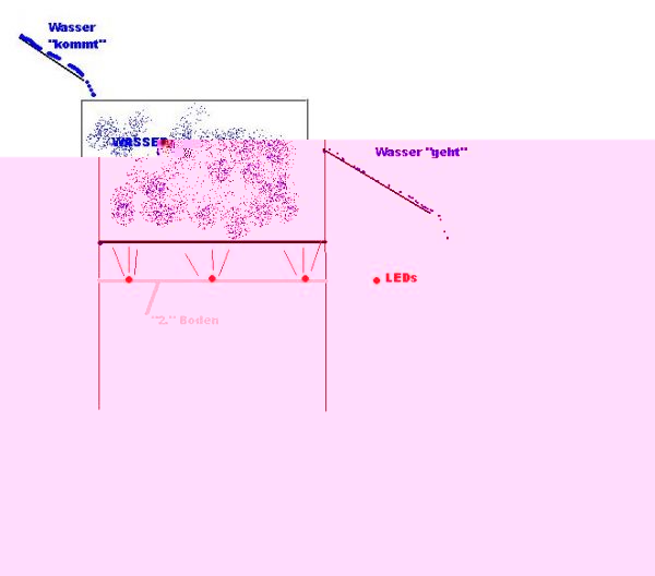 Die Skizze zeigt die Draufsicht, also genau von oben auf das Becken geschaut. Du kannst selbst ausrechnen, wie viele LEDs Du brauchst, Du kennst ja den Abstand der LED zum oberen Acry und den Winkel der LED, also weißt Du auch mit ein wenig rechnen wie groß die angestrahlte Fläche ist...