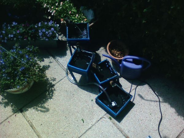 Ich kann zwar jetzt aus deinen Angaben nicht genau erkennen wie der Brunnen werden soll, aber wenn er so werden soll von der funktionsweise her, wie gesagt nicht vom material oder sonstigem: 8) 8)