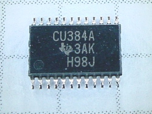 Der Testkandidat, ein SMD IC auf einem karierten Papier mit 5mm Teilung.