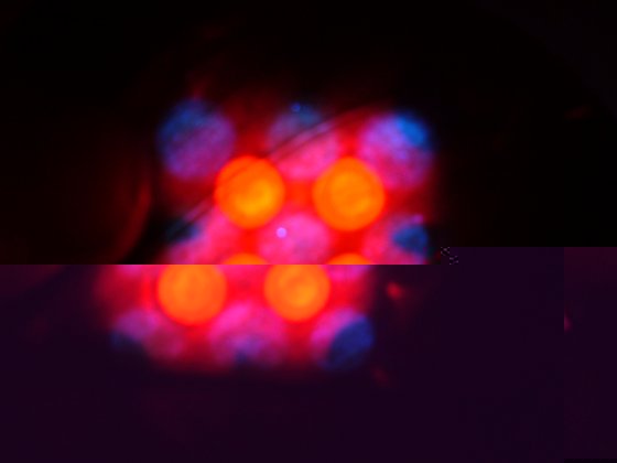 0,25mm Blatt durchleuchet mit 460&amp;amp;625nm.<br /><br />Cluster nach am Blatt<br /><br />Blau nicht vollständig absorbiert aber nur noch sehr schwach vorhanden