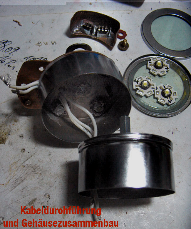 Mit dem Gehäuse müssen wir uns wohl was einfallen lassen, möglicherweise auch über die Lampenhalterung. Die Wärme muss aus dem Gehäuse raus, weil LED´s es möglichst kühl mögen.