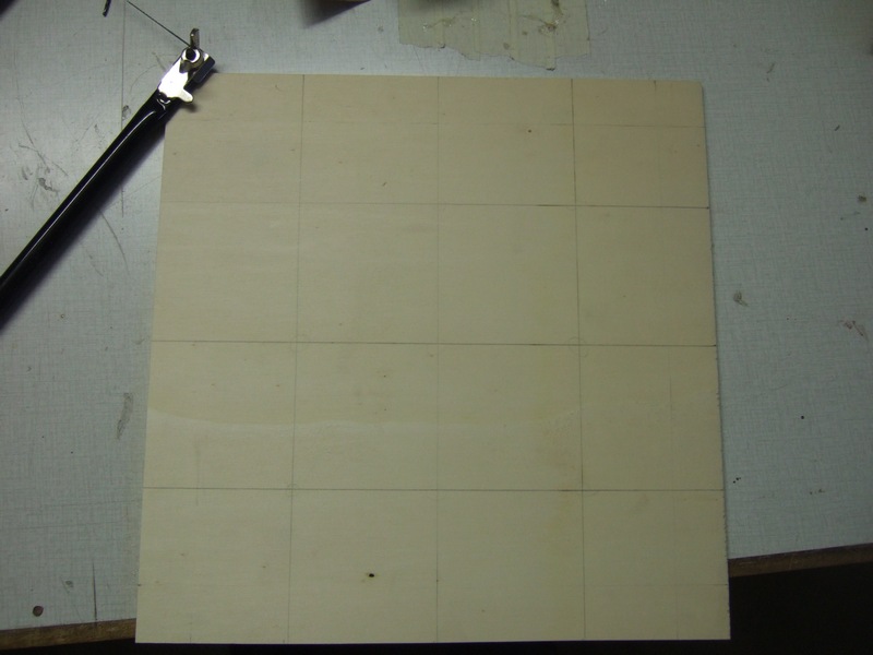 Um die LED's zu befestigen, habe ich einen zweiten Regalboden zurecht gesägt. Darauf habe ich die Positionen für die LED's eingezeichnet und an den markierten Stellen ein 8mm Loch gebohrt.