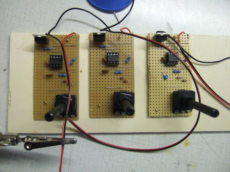 Die Dimmer wurden auf ein Holzbreht genagelt, so dass alle Poti's auf der selbern höhe sind.