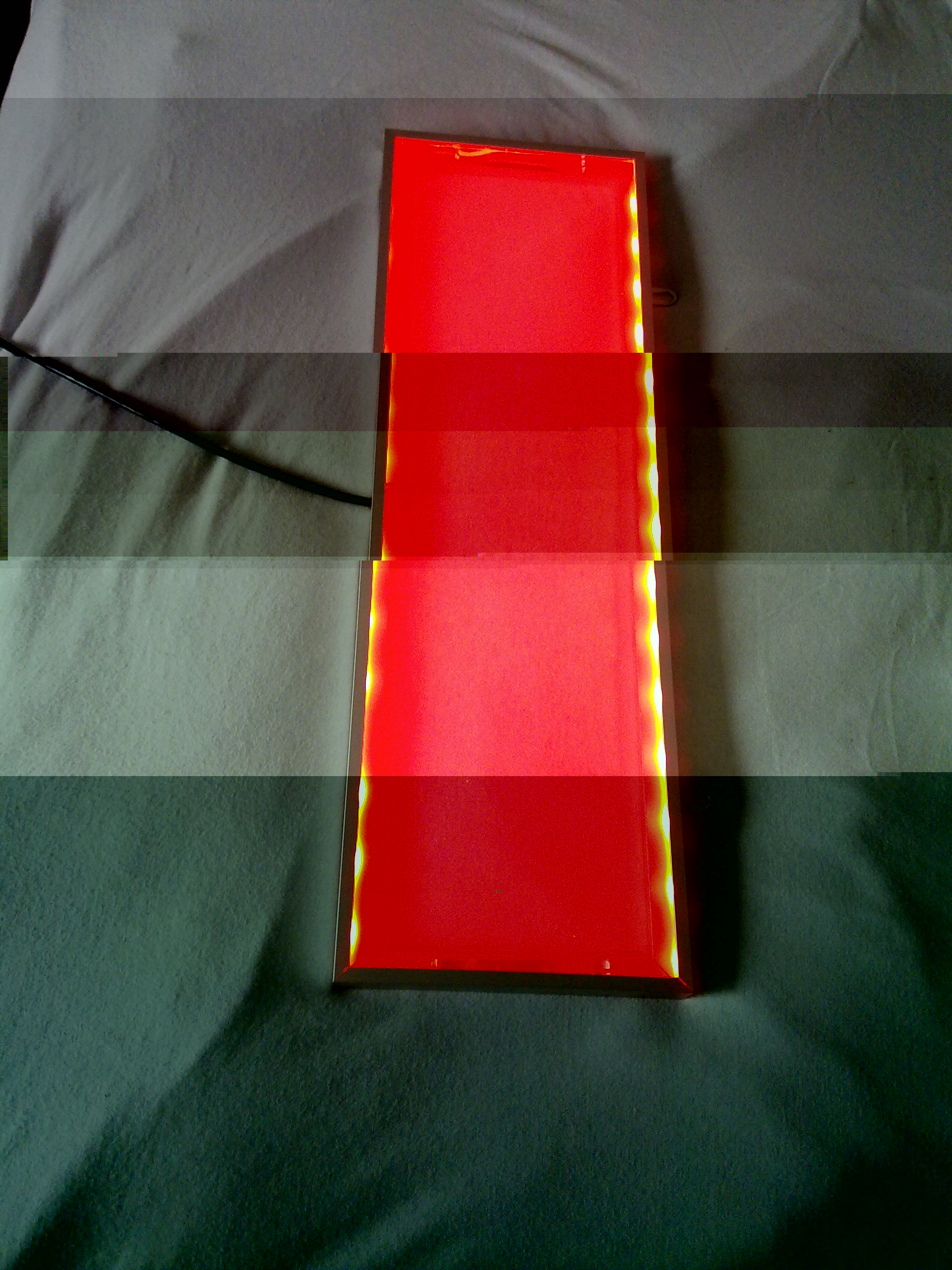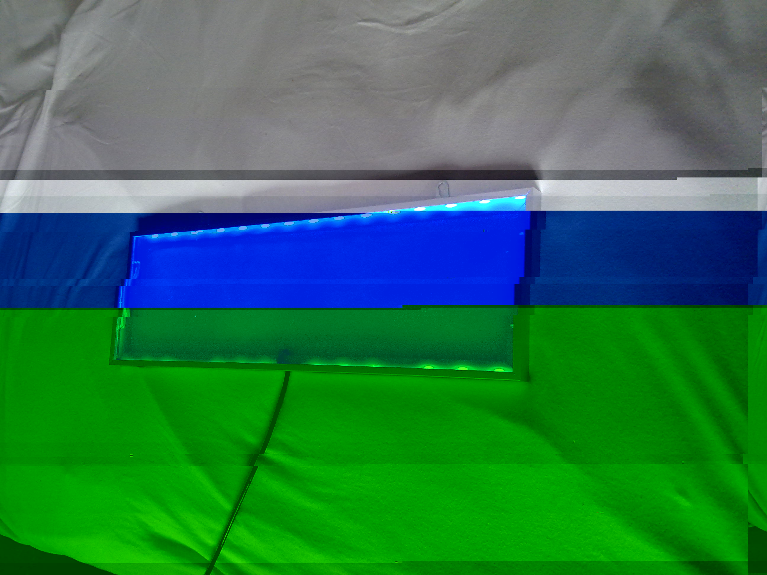Geh ich eigentlich recht in der Annahme, dass das Panel, wenn du mit 2 flexiblen Leisten RGB gearbeitet hast, ca 50cm lang ist? Oder hast du da noch Abstände zwischen einzelen Segementen der Leiste gemacht und das Panel in die Länge zu strecken?