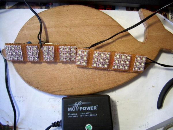 und nach dem Einbau mit 4,32 Watt aus 60 Superflux 2000 (in Wirklichkeit rein weiss)