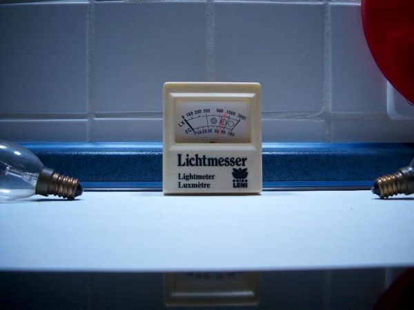 vor dem Einbau noch schnell eine Helligkeitskontrollmessung mit dem 80 Watt Glühobst