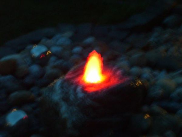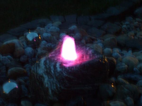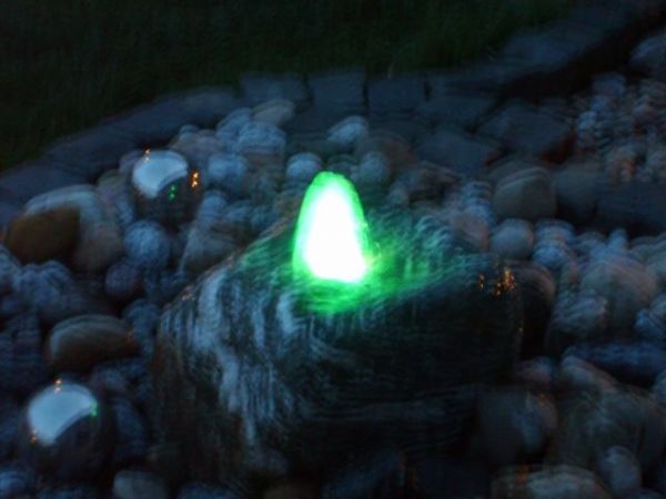 Also der Stein ist schon ganz gut beleuchtet, stimmt es gibt ein schönes geflacker rund um die Wassersäule.