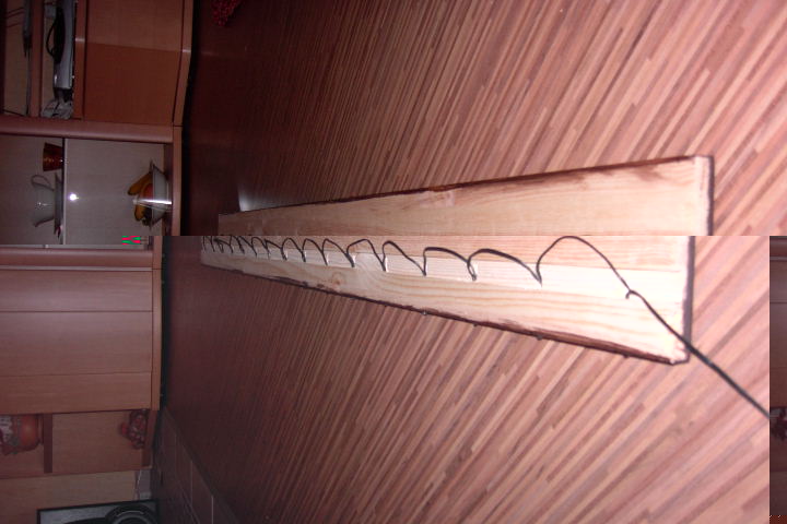 für die Kabel gefräst und von der Seite alle 10cm eine 7mm Bohrung bis zur Nutmitte für die Leds gebohrt.Nachdem ich Zwei Lichterketten mit je 16 weissen 5mm Leds fertig hatte habe ich die Leds mit Montageringen in den bohrungen befestigt.