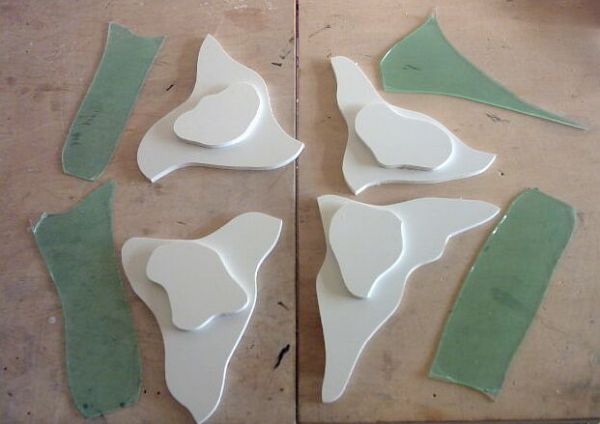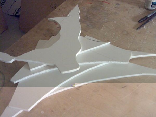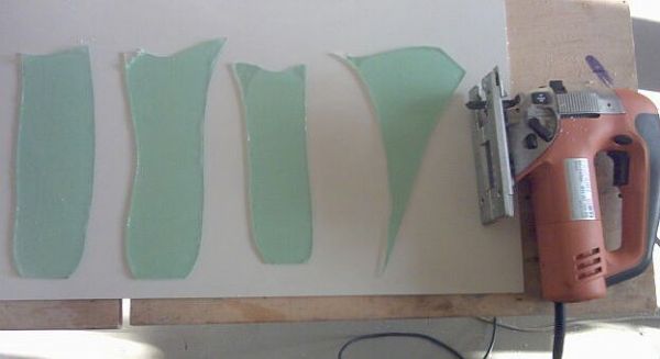 die geschnittenen teile, daneben das zarte maschinchen zum abschnippeln. tipp, beim acryl-schneiden kann