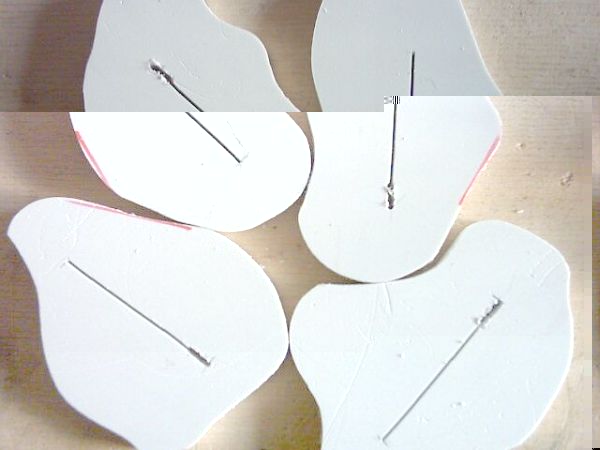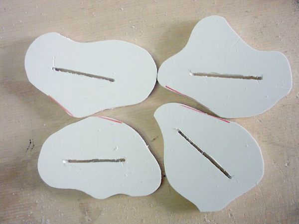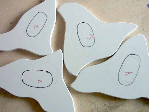 nun wird angezeichnet, wo das acryl in die halterung (obere hartschaum-scheibe) gesteckt wird. dann ein