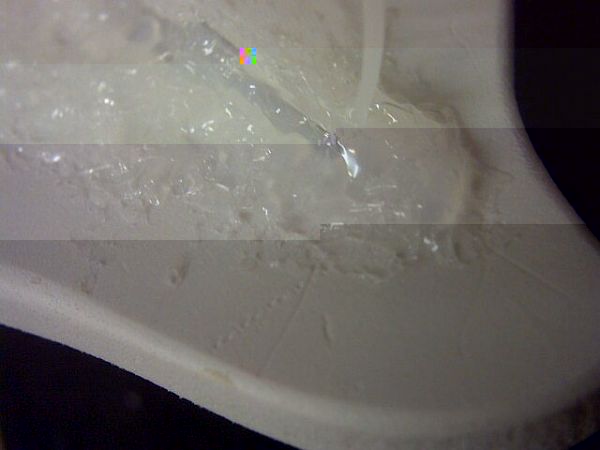 ich hab einige 3mm-bohrungen in die untere scheibe gesetzt. direkt in die tiefste stelle der mulde.