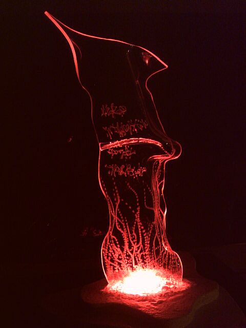 Bei den untersten Bildern hast du nen Loch in der Figur: Hast du das im Vorraus reingesägt, oder solange mit der Heißluftpistole draufgehalten, bis das Acryl verflossen ist?