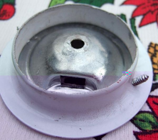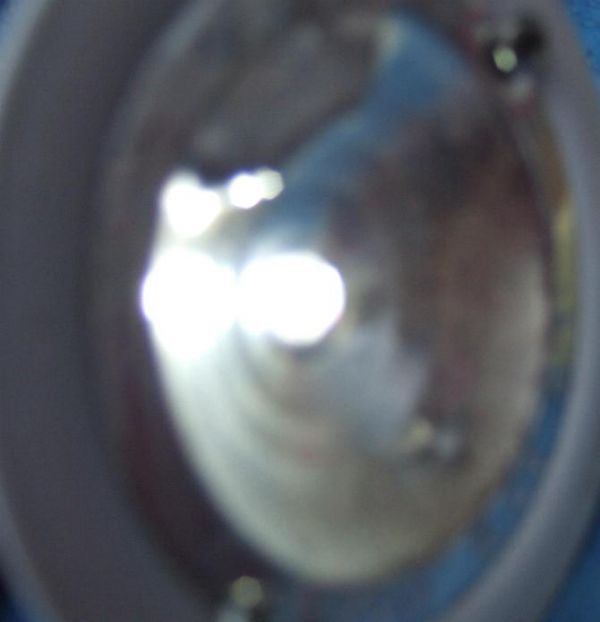 Als erstes habe ich die Niete in der Mitte herausgebohrt, und das Loch im Reflektor auf 6mm vergrößert.