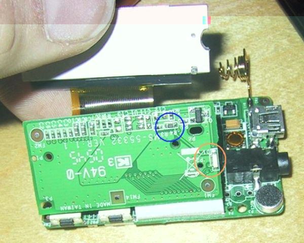 als nächstes umdrehen batterie raus und aufschrauben : und noch eine schraube auf machen ein Stück alufolie entfernen und das Display mit der Platine nach oben klappen vorsichtig die Plastik klemmen lösen die das Display halten die LED (D1) austauchen und gegebenenfals R4. wen man ihn nicht austausch beträgt der Dioden Strom ca.15 mA (ich hatte an dieser stelle leider festgestellt das ich garkeine blauen SMD LEDs mehr habe