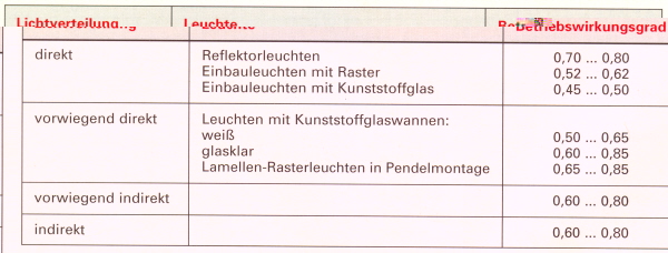 auch mit hilfe einer Tabelle ermittelt zuvor muss jedoch noch der Raumindex k ermittelt werden.