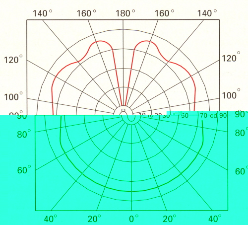 Gibt eine Lampe auch ein gewissen Lichtstrom ab, so ist doch die Lichtstärke nicht in jeder Richtung gleich. Vielmehr erhält man eine Lichtstärke-Verteilungskurve LVK.