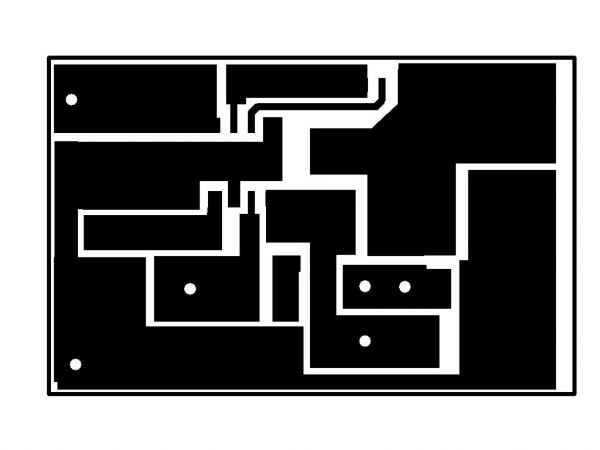 Nachfolgend noch die Layoutbilder. Die Platine ist einseitig und auch mit Hobbymitteln einfach zu fertigen. Die Platinengröße ist 38x24mm.